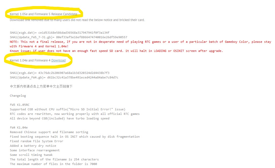 Kernel: É instalado na raiz do cartão SD e tem como nome "ezgb.dat", ele roda direto do cartão SD então em caso de atualizações basta trocar esse arquivo e está pronto, cuidado para não esquecer de adicionar esse arquivo no cartão SD, se esquecer o EZ-Flash Jr. não irá funcionar.